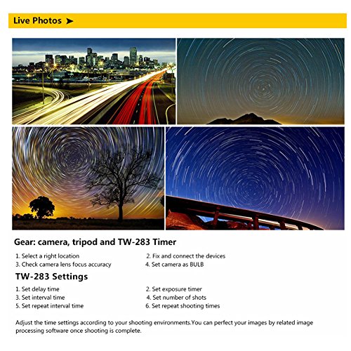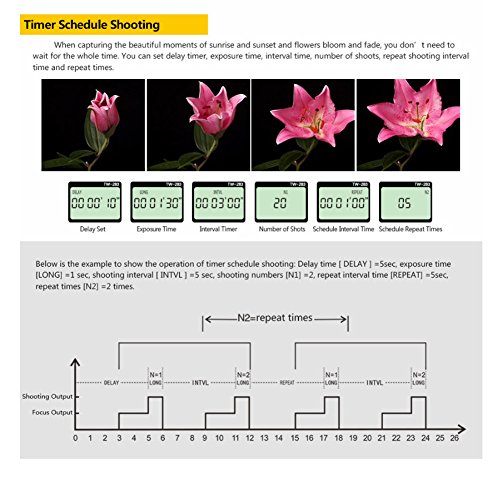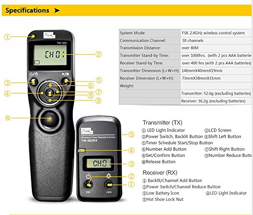 1.Pixel TW283 is a wireless shutter timer remote control specialized in simple single shooting, 1S continuous shooting, [ BULB ] shooting, delay shooting and timer schedule shooting.
