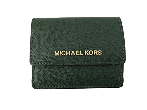 -. Binding : Apparel -. Brand : Michael Kors -. Color : Moss -. Department : womens -. EAN : 0191262308833 -. Feature : Saffiano leather with gold tone hardware. / Approximate measurement: 4.25" W x 3.5" H x 1" D. / Exterior 1 zipper pocket and a ID window. / Interior: 6 credit card slots, 1 multifunctional pocket with a key ring. / Imported. -. ProductGroup : Apparel -. ProductTypeName : ACCESSORY -. Size : Small -. Title : Michael Kors Jet Travel Leather Credit Card Case ID Key Holder Wallet in Moss -. UPC : 191262308833