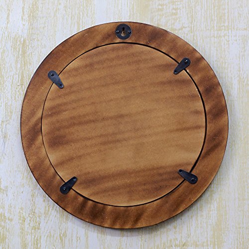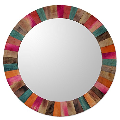 NOVICA Large Rustic Round Mango Wood Wall Mounted Mirror, Multicolor 'Festive Holi'