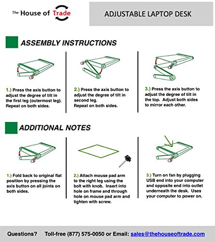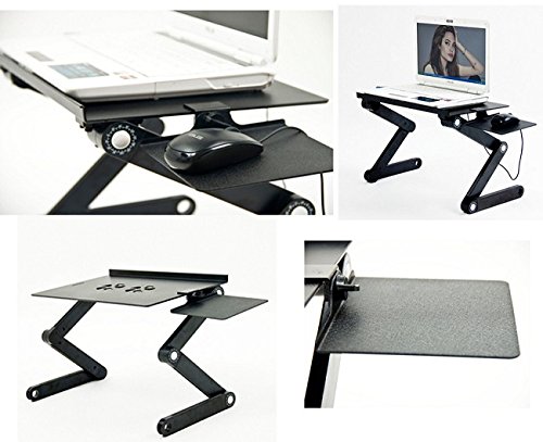 -. Feature : PORTABLE - Makes Carrying Easy and Holds Your Computer Firm and Steady. Rotate 360 Degrees and Lock in Place at Various Angles. Quickly Collapse The Stand to Make it Portable. / FANs = NO OVERHEATING - Air vented cavities design to reduce overheating your laptop / 100% Versatile: Use as TV Tray, Bed Tray, Laptop Stand, Standing Desk, Book Tray, Writing Desk, Tablet Holder, Stand Up Desk, Gaming Table, Notebook Stand, Keyboard Lift, Laptop Tray, Keyboard Riser, Foldable Laptop Desk, Cooling Pad, Computer Stands for Laptop, Adjustable Pedestal Fan, Folding Tray Table, Standing Desk Converter, Laptop Base, Ergonomic Laptop Riser, Desk Raiser, Laptop Cart, Laptop Holder and etc / FULLY ASSEMBLED. No Assembly Required. Collapsible frame for easy storage and portability. Can be set in multiple angles to fit any body position, even laid back on your bed; just hold the button on the joints, change the position, and release the button to lock it in place / MONEY BACK GUARANTEE - Headquartered in California and Operating since 2001, we are USA based and want your repeat business so, if You Do Not Like our Product or Don't Want It For Any Reason, We Will Happily Accept The Return and Give You Your Money Back. No Questions Asked. 30 Days Money Back Guarantee - 12 Months - Exchange - Phone Service is Available (Hint: Always Check Sellers Location Info to Guarantee Warranty Claims after 30 Days)