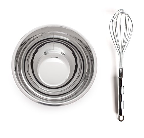 +STEEL MIXING BOWL SET INCLUDES: 4 Bowls with Lids Sizes 1Qt, 1.5Qt, 3Qt, and 5Q as well as an all Stainless Steel Whisk for convenience. Made with increased thickness of steel to ensure long lasting durability.