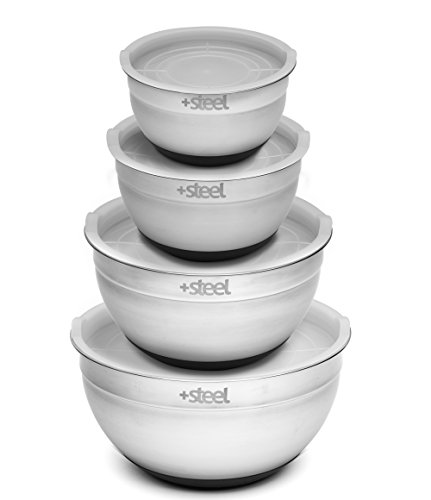+Steel Stainless Steel Non-Slip Mixing Bowl Set of 4 with Lids and Whisk