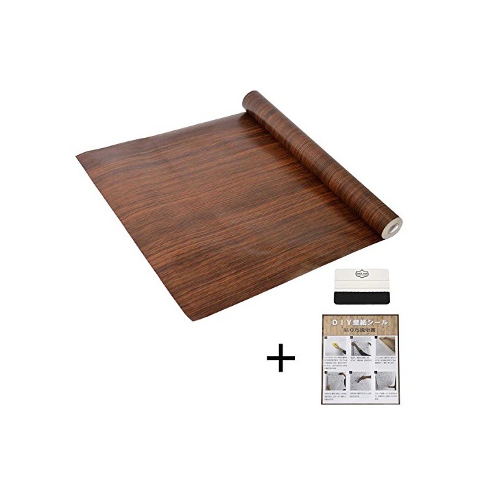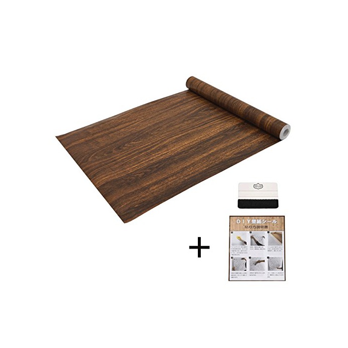 Ones own ones own 나무결 디자인 벽지 씰&만능 스키 더 세트 간단(교정)첩부씰 타입 45cm×10m DIY벽지 씰 (C암갈색)