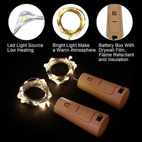 - 【A NEW WAY TO RECYCLING BOTTLES FOR DIY】:Our Product Made of High-quality Ultra Thin Copper Wire(The Inner of the Silver Wire is Copper) ,Design is unique as for make a special romantic feeling. The Led Cork String lights can Easily to Fix on Your Wine Bottle Beer Bottle Whiskey Bottle,and And Any DIY Shape You Love. It is ideal choice for decorate your table, wedding, party, Christmas, New Year