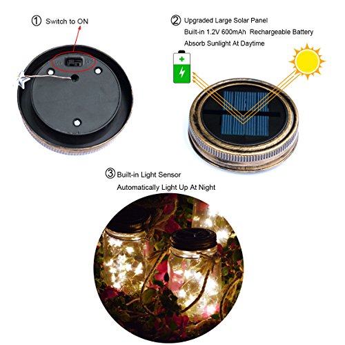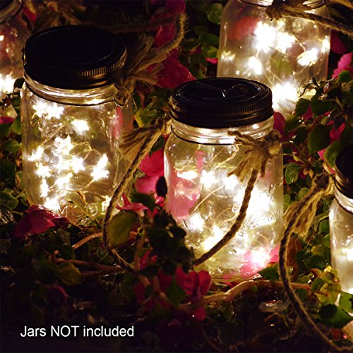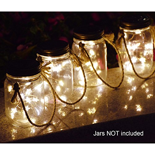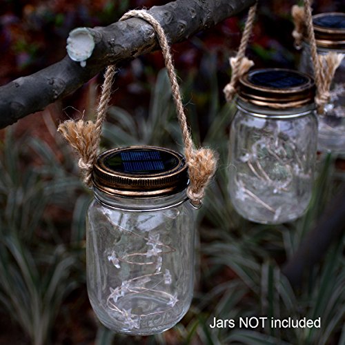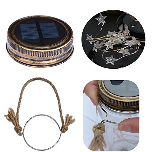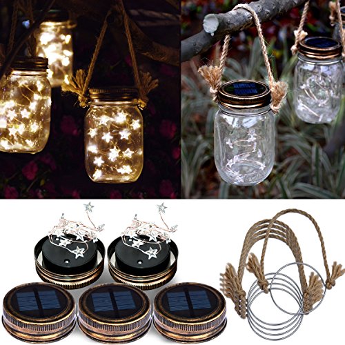 Homeleo 5 Pack Handmade Vintage Solar Mason Jar Lid Star Lights Burlap Hangers, Solar Powered Warm White Mason Jar Firefly Light for Outdoor Spring Garden Summer Backyard Decoration(Jars Not Included)