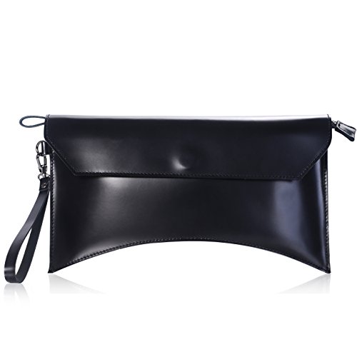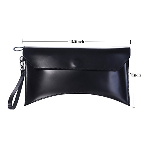 -. Title : iYaffa Women Clutch Handbag Genuine Leather Glazed Large Wristlet Purse Bags with Strap