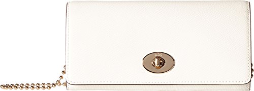 COACH Women's Crossgrain Leather Slim Chain Envelope Chalk Handbag