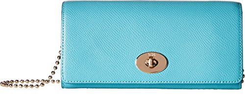 COACH Women's Crossgrain Leather Slim Chain Envelope Cadet Blue Handbag