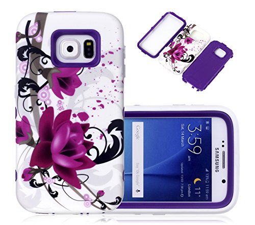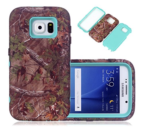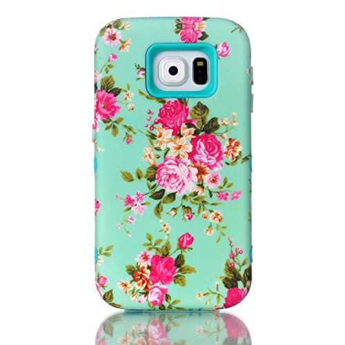 S6 Case, Galaxy S6 Case, CexCob Vintage Floral Flowers [Shockproof] 3 in 1 Hybrid Silicone TPU & Plastic Rugged Heavy Duty Bumper Combo High Impact Durable Phone Case for Samsung Galaxy S6, Mint