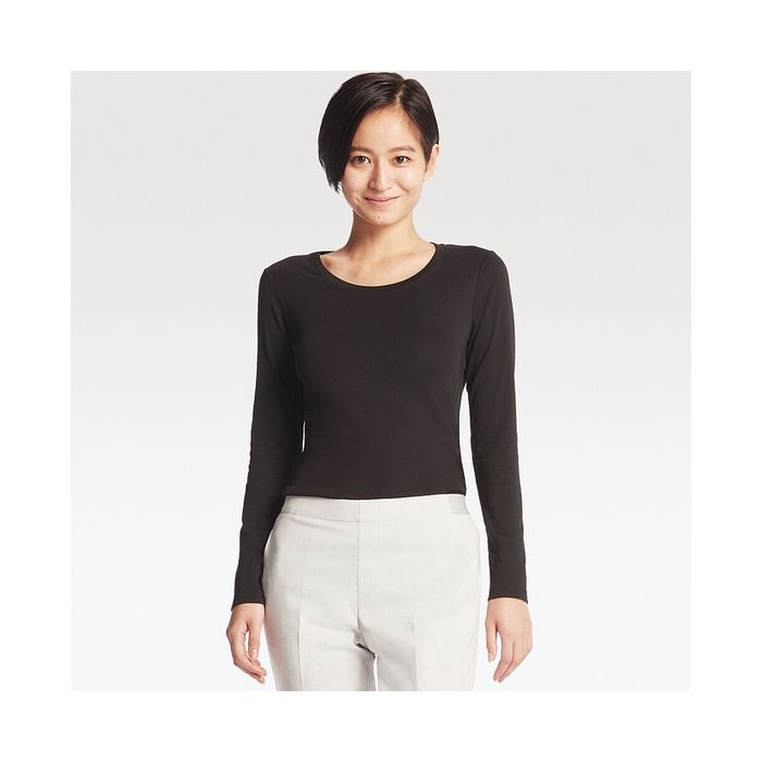 Uniqlo 유니클로 WOMEN 수《피마콧톤모다루쿠루네》《구》T(긴 소매) - 192906