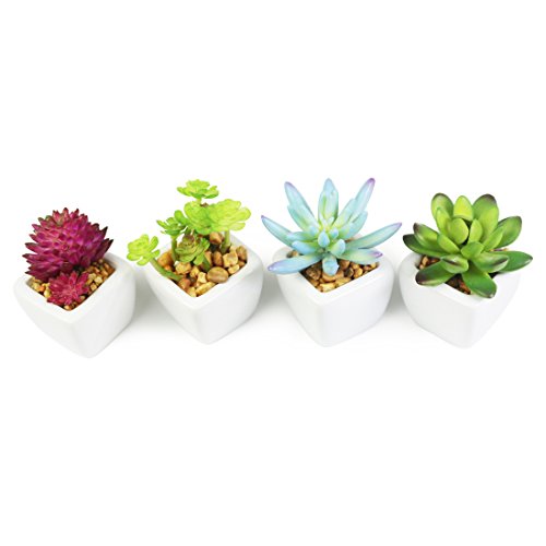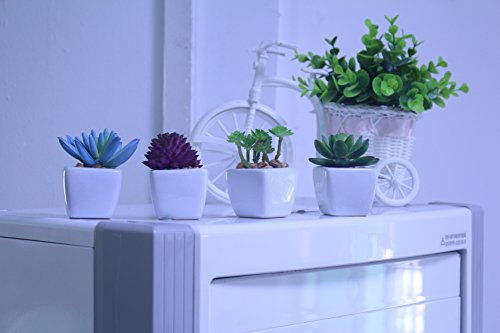 -. Title : Home Decor--Set of 4 small Cube-Shaped Ceramic Pot with 4 different Artificial Succulent Plant for Home decoration Office decoration