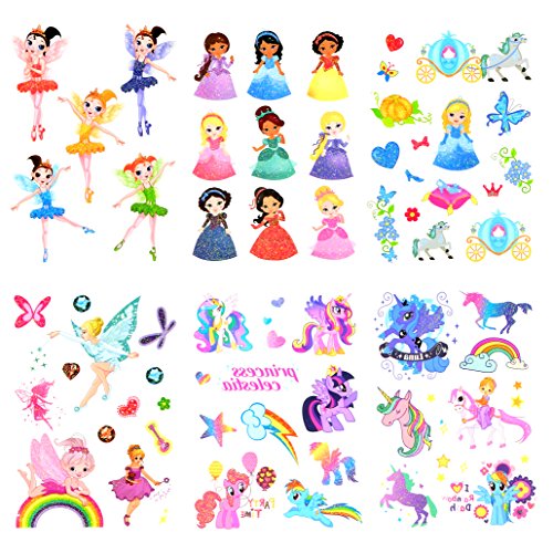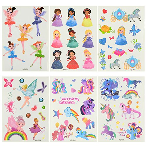 Oottati 6 Sheets Glitter Powder Girls Children Temporary Tattoo Princess Rainbow Unicorn Horse