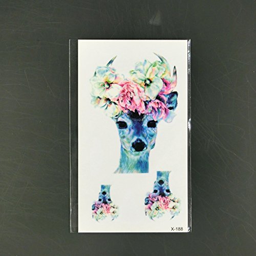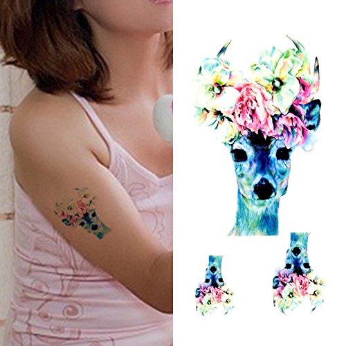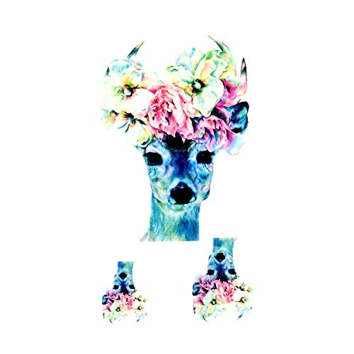 Oottati Small Cute Temporary Tattoo Watercolor Sika Deer (Set of 2)