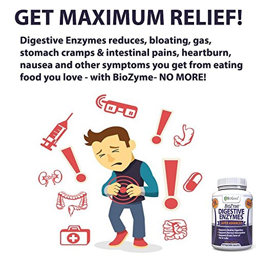 ENJOY SUPER IMPROVED DIGESTION & GET MAXIMUM RELIEF - Finally enjoy the foods you love! BioZyme reduces stomach bloating, belching, gas, heartburn, diarrhea, undigested food in the stools, intestinal cramps, abdominal pain, nausea, & fatigue that result from poor digestion, constipation, dietary (food) intolerances and other digestive problems. It may also aid people with no gallbladder.