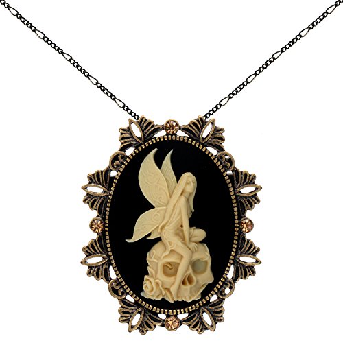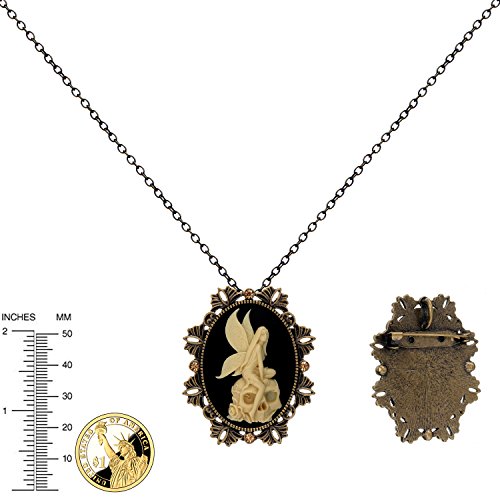 -. Title : Angel on the Skull Brooch Necklace Two Way Functional Antique Brass Pendant 18" 24" Chain Pouch for Gift