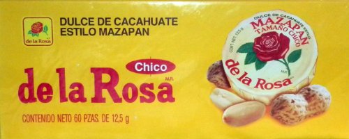-. Binding : Misc. -. Brand : de la Rosa -. EAN : 0719042700006 -. Feature : Dulce De Cacahuate Estilo Mazapan / Peanut Candy 60 Pcs 12.5g Each / This listing is for one box with 60 pcs inside. -. IsAdultProduct : 0 -. Label : De la rosa -. Manufacturer : De la rosa -. PackageQuantity : 1 -. ProductGroup : Grocery -. ProductTypeName : GROCERY -. Publisher : De la rosa -. Studio : De la rosa -. Title : Dulce De Cacahuate Estilo Mazapan De La Rosa 60 Pcs 12.5g Each -. UPC : 719042700006