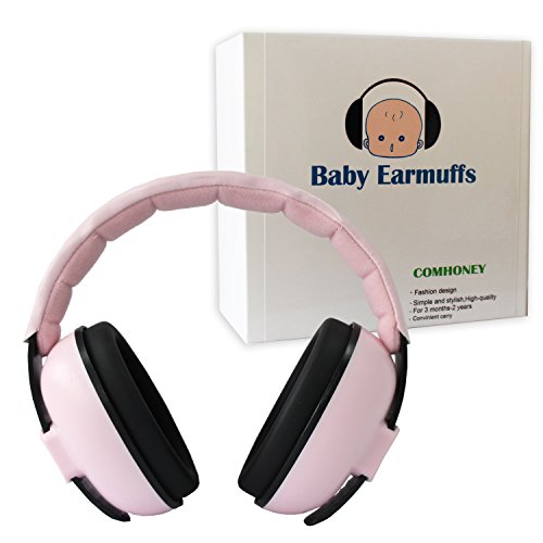 Comhoney Foldable and Adjustable Baby Ear Muffs Infant Hearing Protection Ear Defenders Safety & Noise Reduction for Newborn 3 Months - 2 Years for Sleep Shooting Airplane (pink)