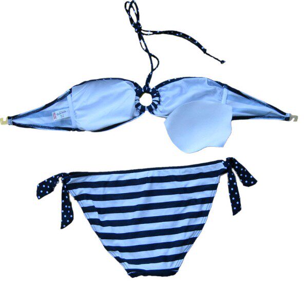 | 款式描述 | 分体泳衣,挂脖系带式,配三角裤 | ||