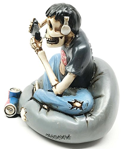 -. Binding : Kitchen -. Brand : Gifts & Decor -. EAN : 0636676546889 -. Feature : This sculpture is 4" tall, 4" wide and 3.75" deep approximately. / Made of designer composite resin, hand painted and polished / Because each piece is partly handcrafted, color tone may vary slightly from pictures. -. Label : Gifts & Decor -. Manufacturer : Gifts & Decor -. ProductGroup : Home -. ProductTypeName : HOME -. Publisher : Gifts & Decor -. Studio : Gifts & Decor -. Title : Skeleton Addicted Pro Gamer Stuck On Floor Pillow Skull Figurine Collectible Statue Multiplayer Video Game For Life And Eternity -. UPC : 636676546889