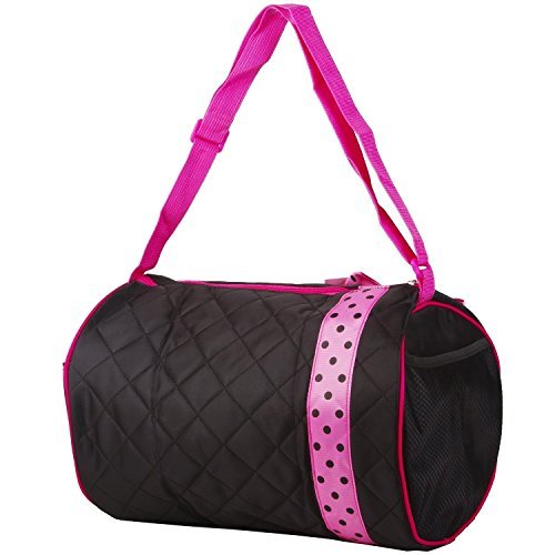 1 Perfect Choice Girls Dance Duffle Bag Kids Quilted Ribbon Polka Dots Black Totes Bag