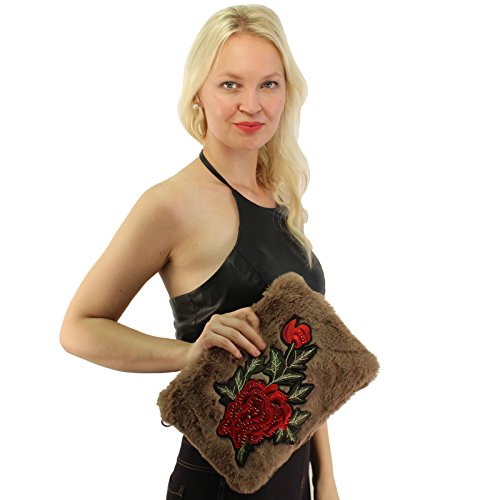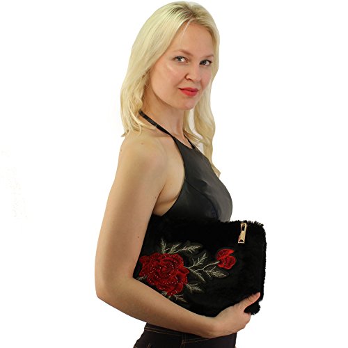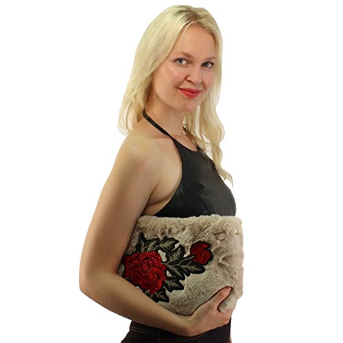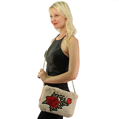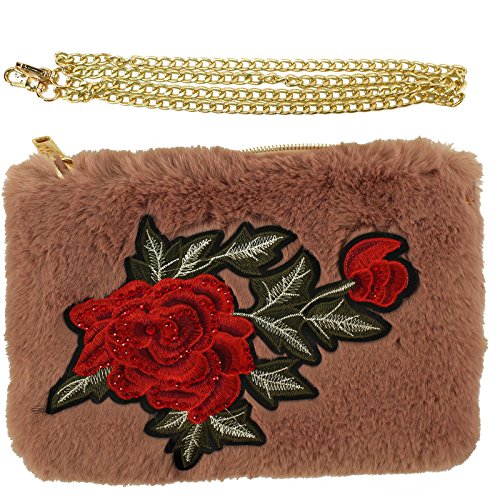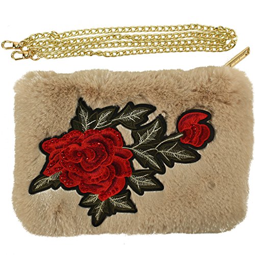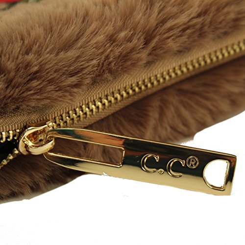 Winter CC Faux Fur Furry Fuzzy Fall Crossbody Shoulder Bag Baguette Removable Strap Clutch Handbag Purse. Just in CC furry fuzzy faux fur handbag that will match your beanies hats as well. What a great versatile cross body shoulder handbag. This will go with everything, casual or a night out on the town. Removable gold tone long metal strap, removable strap, turns into a clutch evening cocktail purse. 1 exterior zipper pocket, 1 medium size interior middle compartment for your cash money and credit cards. Zipper tab CC logo. Will fit 2 large smartphones and lip gloss, lipstick, compact mirror and and your house keys. Also great as a cosmetic bag. Keep all valuable in here and switch out into bigger size bags. Makes a great gift.Great for multiple seasons. Will compliment any outfit. Makes a great gift for anyone. Animal friendly, no animals harmed 0 |
