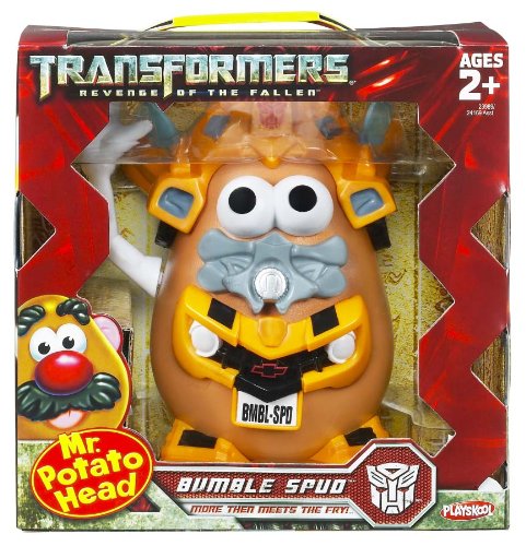 -. Binding : Toy -. Brand : Mr Potato Head -. EAN : 0653569380191 -. Feature : Popular TRANSFORMERS BUMBLEBEE character is brought to "life" spud style / Mix and match body parts to create lots of fun looks / The wacky spud you know and love is back / This fry guy is ready to do battle or just make you laugh / Hours of mix-and-match fun -. IsAdultProduct : 0 -. Label : Hasbro -. Manufacturer : Hasbro -. Model : 23989 -. MPN : 3016014 -. PackageQuantity : 1 -. PartNumber : 3016014 -. ProductGroup : Toy -. ProductTypeName : TOYS_AND_GAMES -. Publisher : Hasbro -. ReleaseDate : 2009-05-30 -. Studio : Hasbro -. Title : Playskool Mr. Potato Head Transformers Bumble Spud -. UPC : 653569380191