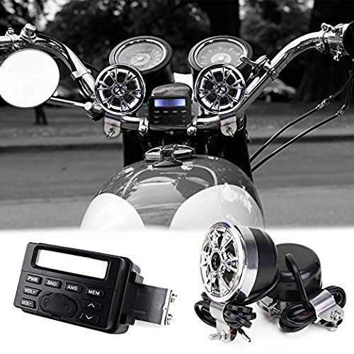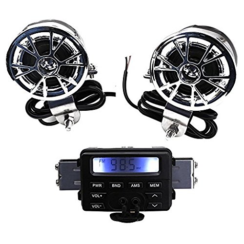 BADASS SHARKS New 12V Waterproof ATV Motorcycle Motorbike Scooter Audio System Handlebar FM MP3 Stereo Speaker Audio Sound System AUX Input 2 Speaker for Cruiser Biker Chopper Cafe Racer ATV