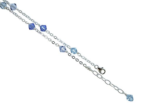 -. Feature : Metal- .925 Sterling Silver. Flat Oval Rolo style Link / Made with Swarovski Crystal elements. 6mm Bicones / Color- Sapphire Blue colored, Aquamarine colored, and Light Sapphire colored 6mm Bicones / Length- 7, 8, 9, 10, 11, 12, 13 Inches / Bracelet, Anklet. 1 Inch Extension