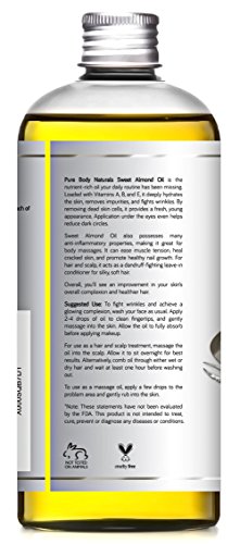 -. Title : Sweet Almond Oil Triple AAA+ Grade Quality Hexane Free For Hair For Skin and For Face - 100% Pure from Spain - Cold Pressed - 16 fl oz by Pure Body Naturals