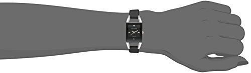 Silver-tone rectangle case; wall-to-wall mineral crystal lens; black glossy dial with genuine diamond at 12; silver-tone hands and markers