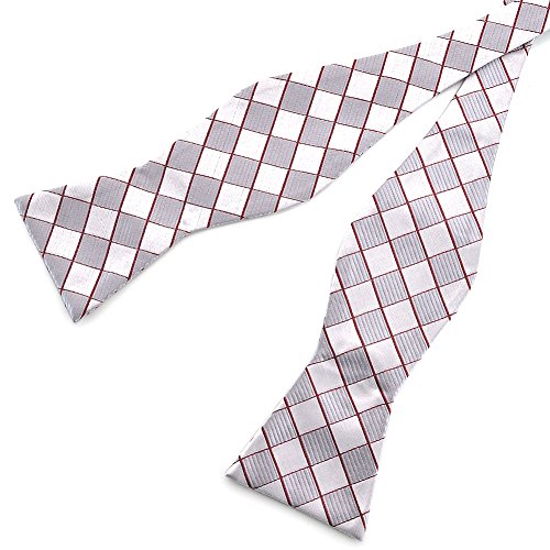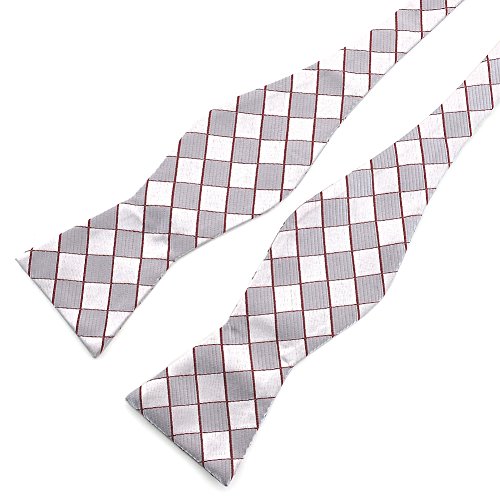 - Title : PenSee Mens Self Bow Tie Classic Houndstooth Series Woven Silk Bow Ties (Silver Gray & White Plaids)