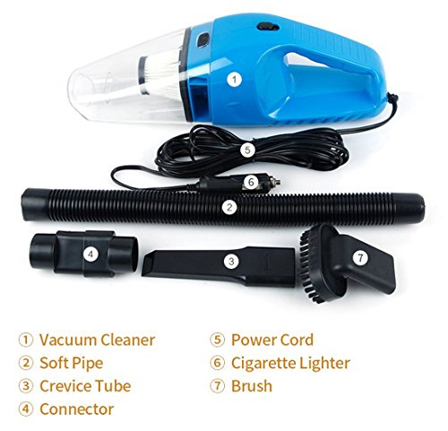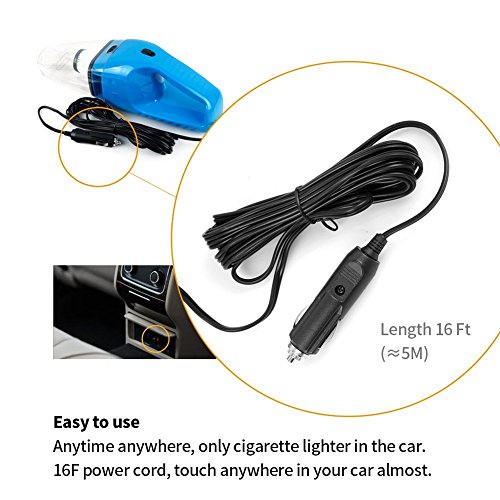 PACKAGE INCLUDES: 1x car vacuum cleaner, 1x EVA soft tube, 1x brush , 1x nozzel, 2x connectors of the tube, 1x user manual in a customized box; Wire length = 16.4 ft(5 M)