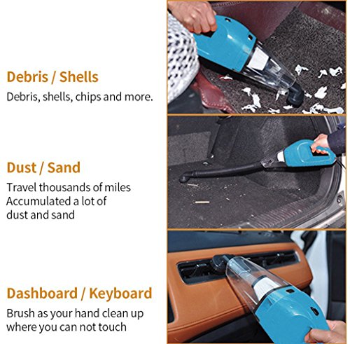 This Auto Handheld Car Vacuum Cleaner with 120W DC 12V suction, sucking up wet and dry spills in seconds. Ideal tool to clean crumbs, dog hair, sand, dust, dirt, cigarette ash and more other small things in cars, trucks, vans, pickups and caravans.