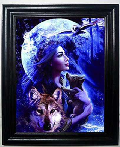 WOLF PRINCESS 3D FRAMED Wall Art--Lenticular Technology Causes The Artwork To Have Depth and Move-HOLOGRAM Style Images-HOLOGRAPHIC Optical Illusions By THOSE FLIPPING PICTURES