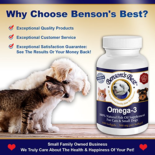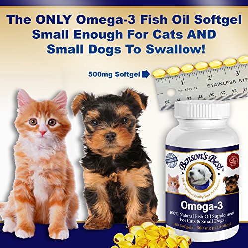 - Title : Benson's Best Omega-3 Fish Oil for Cats & Small Dogs - 100% Pure and Natural Pet Food Supplement - Higher Concentration of Omega-3 Fatty Acids than Alaskan Salmon Oil! The Only Softgel Capsule Small Enough for Cats and Small Dogs to Swallowt