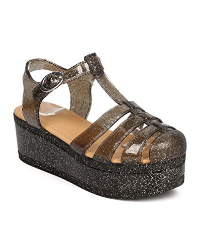 -. Title : Wild Diva Women Glitter Platform Wedge Sandal - Dressy, Teen, 90's - Jelly Fisherman Sandal - GD81