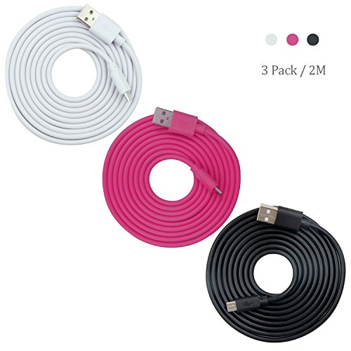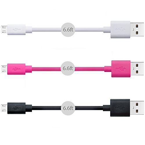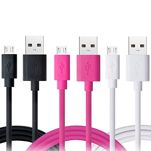 OKRAY 3 Pack 3.3ft High Speed Durable PVC Micro USB 2.0 Charging sync Data Cable Cord for Android, Samsung Galaxy S6, HTC, LG, Sony, NOKIA, Xbox One, Motorola, Google Nexus (Black White Hot Pink)