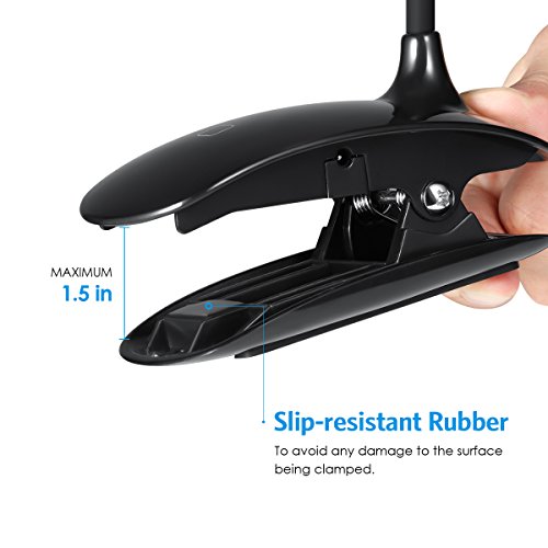 Consists of 16 LEDs, it is much brighter than those with 14 LEDs, bright enough for your daily use. It can last for 8-10h with low modes, 4-5h with middle mode and 3h with high mode. Designed with multi-use clip, it can clamp 5cm thickness, you can clip on your desk, bedside and so on.