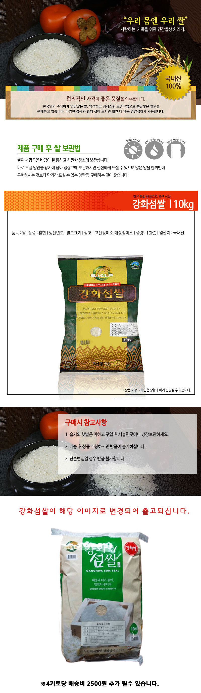 - 포장단위별 용량(중량)/수량/크기강화섬쌀 10kg
