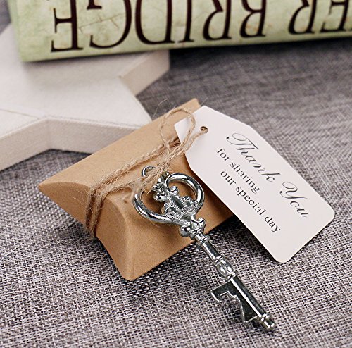 -. Title : 50pcs Wedding Favors Candy Box w/ Antique Skeleton Key Bottle Openers Escort Card Thank You Tag Pillow Box