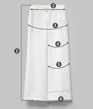 尺码 ①裤长 ②腰围 ③臀围 ④大腿围 ⑤膝围 ⑥脚围 ⑦前裆 ⑧后裆