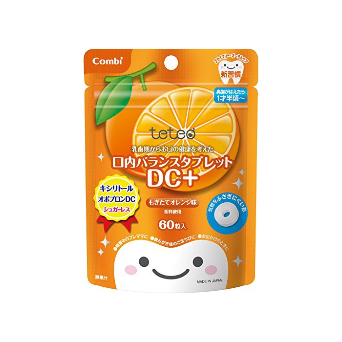원본상품명: コンビ テテオ 乳?期からお口の健康を考えた 口?バランスタブレット DC+ もぎたてオレンジ味 60粒入