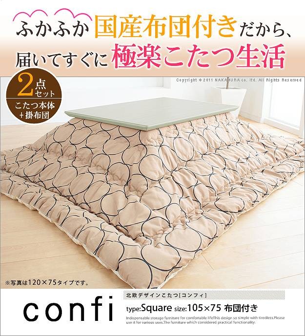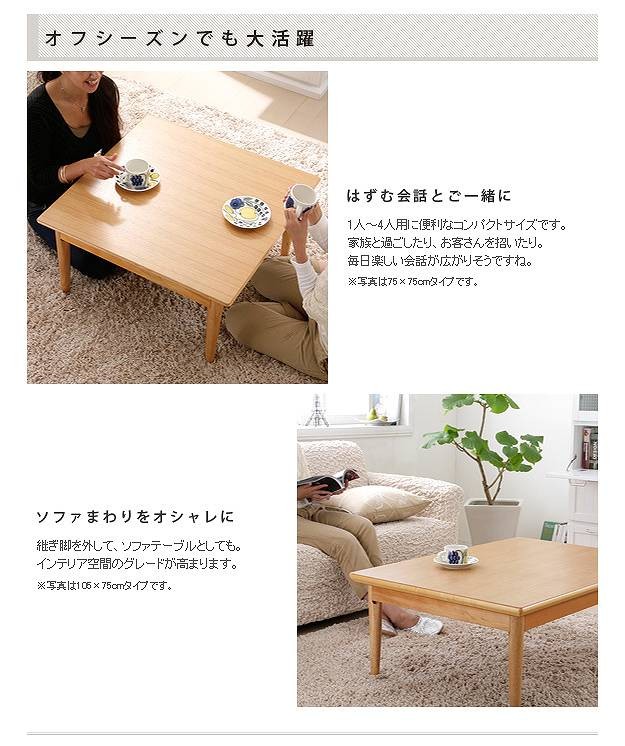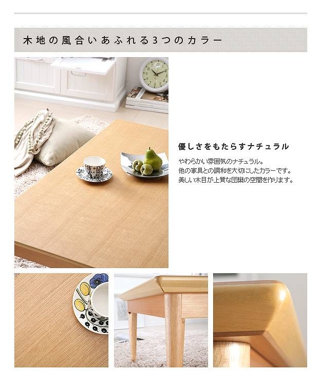 商品について:木目が美しい素朴な風合いが魅力の日本製こたつと色柄豊富なこたつ布団のセットです。シーズンオフにはリビングテーブルとして。