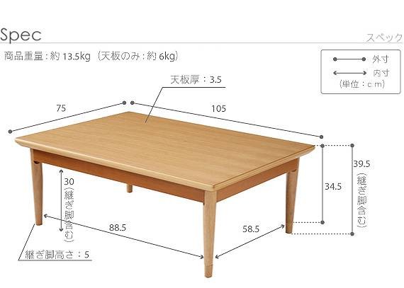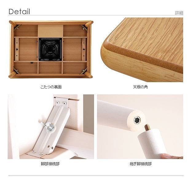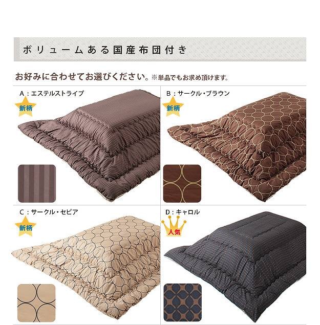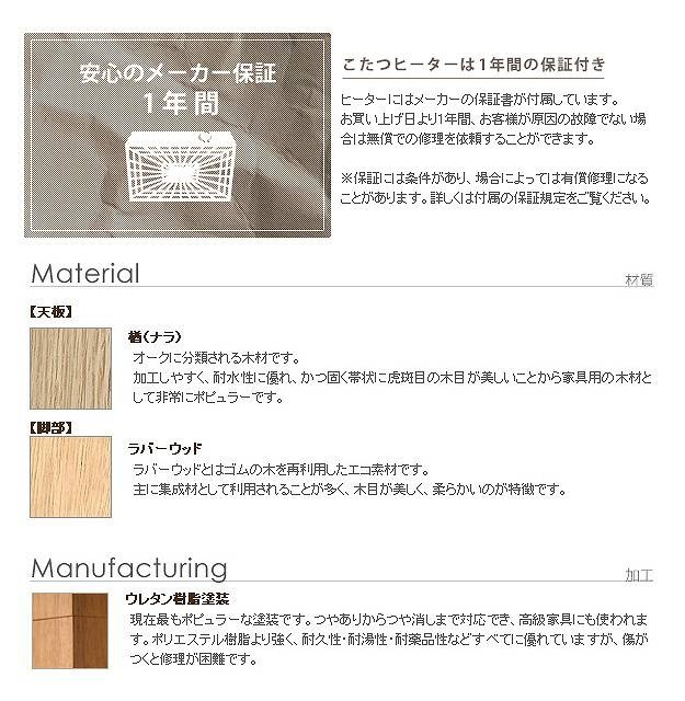 材質:天板-天然木化粧繊維板、こたつ布団(表地・裏地)-綿100%〔Aエステルストライプ表地-ポリエステル100%〕