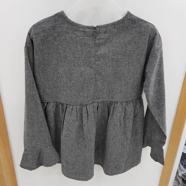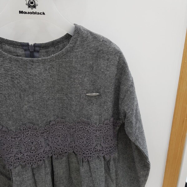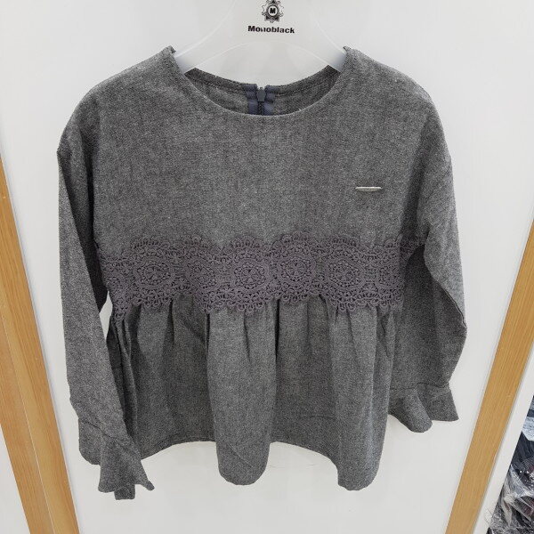 차콜색상의 레이스장식과 소매셔링이 포인트인 블라우스입니다.