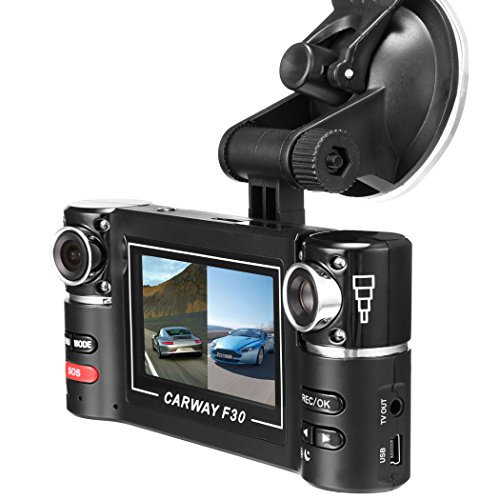 -. Feature : Motion Detection - The car dvr will automatically start recording videos when the vehicle starts, and it support video-recording while charging. / SOS emergency button - press SOS button in case of emergency, the machine will automatically save 2 files of the emergency as undeletable files. Guard against traffic racketeering, road rage attack/robbery, restore the truth. / Fast switch to the night shoot mode, the mode is very effective to solve the over-exposure problem, and thereby to see the license plate as clearly as possible. / Dual lens camera with 2.7" 16:9 HD separable display screen, lens can rotate by 180° / Unique dual lens design combining a wide-angle lens and a telephoto lens, user has choice to display split videos or single video