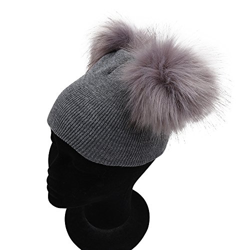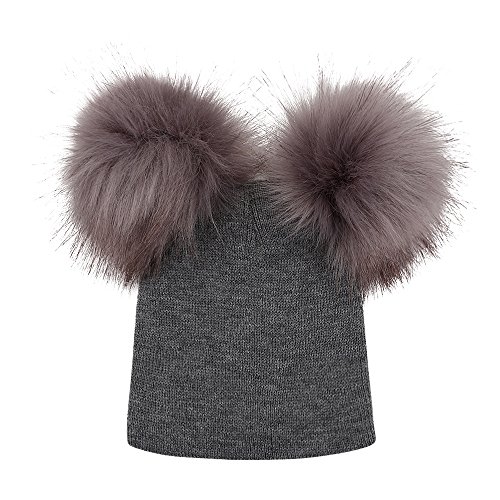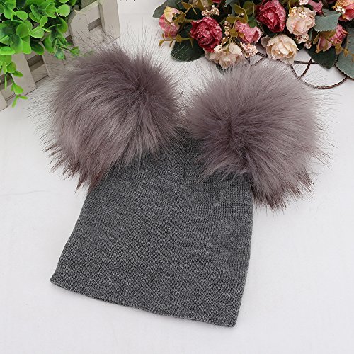 (ReFaXi)/Accessories/Cold Weather Accessories/DIRECT FROM USA/Refaxi Grey Infant Baby Winter Knitted Cap With Double Pom Pom Cute Beanie Hat Outdoor