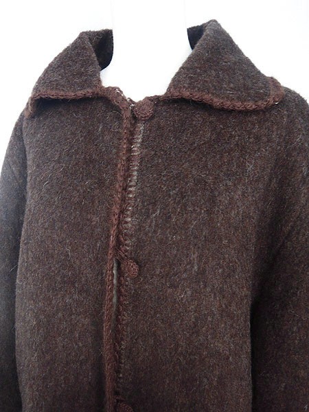 Ladies ブランド- カラー茶 メール便不可 コンディション★★★ モデル- 素材ウール 表記サイズ- スタッフコメントタグなし。裏地なし。右裾に虫食い、生地薄れあり。 実寸サイズ 着丈 87.5 cm 袖丈 81 cm ※ウエスト・ヒップ以外は平置き採寸
