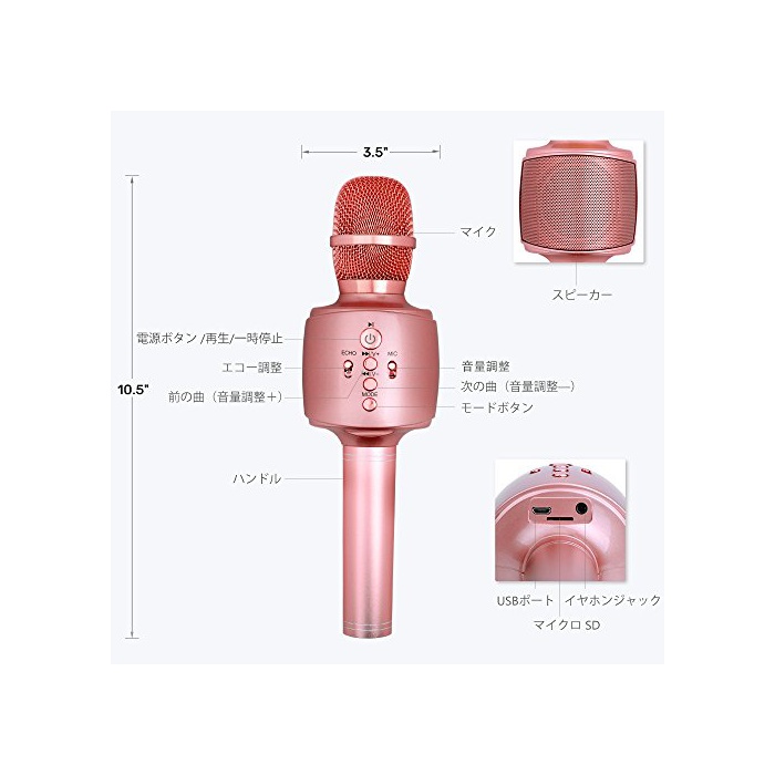 원본상품명: Verkstar スマホカラオケマイク Bluetoothマイク携スピカ 高音質カラオケ機器 一人でカラオケ練習 音可能Android/iPhone、PCに イヤフォンジャック&1年保