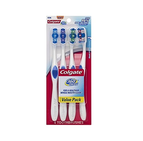 -. Title : Colgate 360 Whole Mouth Clean Toothbrush, Value Pack, Soft, 4 ea